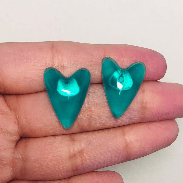 Aritos corazones translúcidos verdes/turquesas